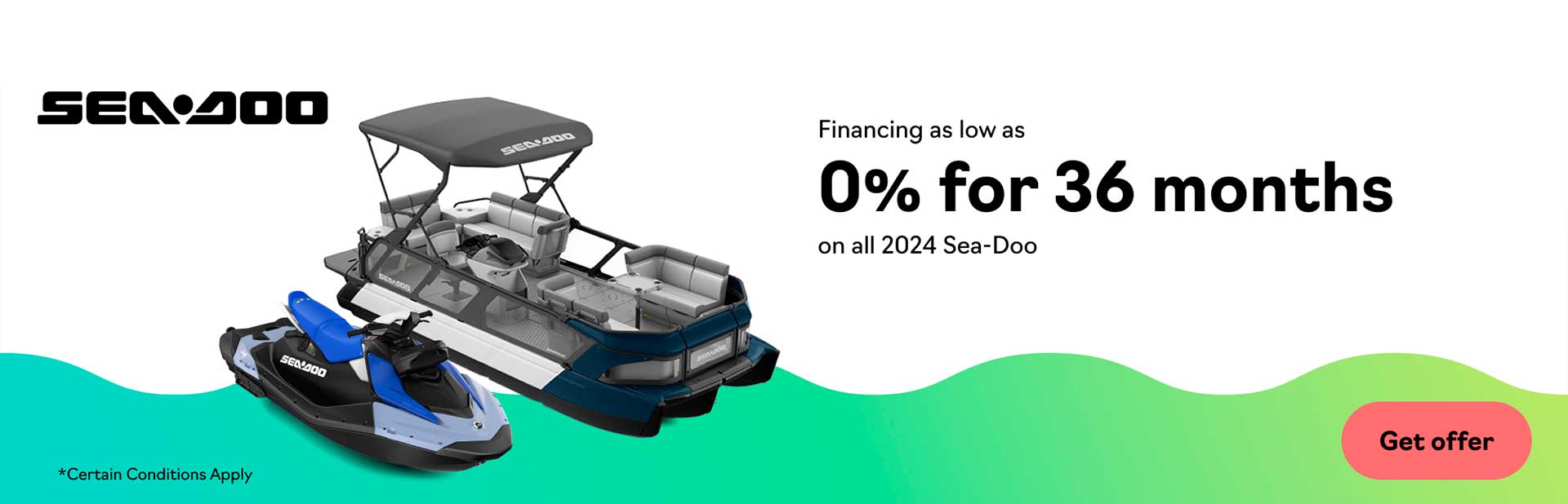 Financing starting at 0% for 36 months on all 2024 Sea-Doo Switch models