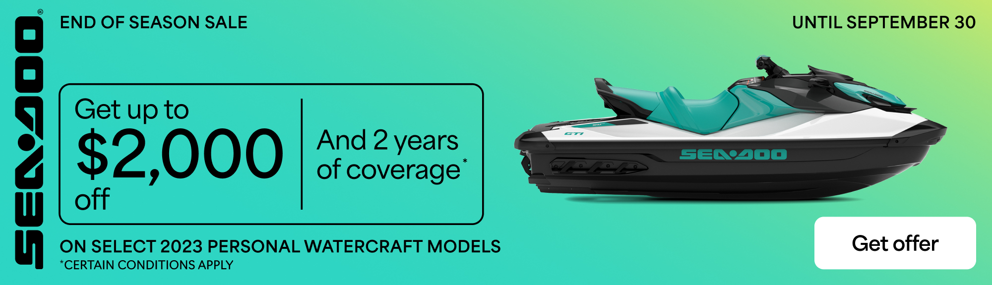 Get a rebate up to $2,000 and 2 years of coverage on 2023 personal watercraft models